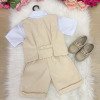 Conjunto Social Miss Cherry Leandro Colete Palha – Bege