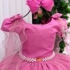 Tecido: Techno Sport Forro/ Tule: 100% PoliesterUm modelo digno de princesa, criado para transformar cada momento especial em um verdadeiro conto de fadas. Detalhes que encantam: Laço nas costas: um toque cheio de charme. Lastex ajustável: garante caimento perfeito e máximo conforto. Tule sobre os ombros: sofisticação e delicadeza em cada movimento. Cinto em pérolas: detalhe sutil que valoriza a cintura e completa o look.Perfeito para casamentos, aniversários e eventos onde sua pequena deve ser o centro das atenções.  Atenção: As medidas podem variar em até 2cm. Recomendamos sempre consultar a tabela de medidas antes da compra para evitar erros. Para um volume extra, indicamos o uso de saiote de armação, vendido separadamente na categoria acessórios. Tiara e outros acessórios não acompanham o produto, mas estão disponíveis em nosso site. Calçado vendido separadamente, disponível na seção de calçados.As cores do produto podem sofrer variações de tonalidade conforme a configuração da tela do seu dispositivo.