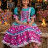Vestido Infantil Junino Confeccionado em tecido Tecnosport, esse vestido oferece um caimento impecável, sofisticado e confortável, perfeito para as comemorações mais queridas do ano. Um modelo que une o clássico das festas juninas com acabamento delicado e bem estruturado. Detalhes do modelo• Tecido principal: 100% Poliéster (Tecnosport Plus)• Forro do corpo: 100% Poliéster• Forro da saia: 100% PoliésterIdeal paraFestas Juninas e Julinas, apresentações escolares, quadrilha, São João e eventos temáticos no estilo caipira. Informações Importantes As medidas podem variar em até 2cm. Recomendamos sempre consultar a tabela de medidas antes da compra para evitar erros. Tecido 100% poliester Para um volume extra, indicamos o uso de saiote de armação, vendido separadamente na categoria Acessórios. Tiara e outros acessórios não acompanham o produto, mas estão disponíveis em nosso site. Calçado vendido separadamente, disponível na categoria Calçados