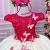 Confeccionado em tecido misto possui forro em poliéster e algodão para não incomodar a criança e proporcionando um caimento incrível e sofisticado, possui gola redonda, comprimento médio, mangas curtas, apliques de Renda e Borboletas, contém, também, elástico nas costas para melhor ajuste, acabamento com lindo laço na parte posterior do vestido completa o look dos sonhos! * Medidas podem variar em até 4cm. * Caso queira o vestido mais armado, recomendamos o uso do saiote ou anágua de armação, disponível no nosso site na categoria acessórios. * Tiara vendida separadamente, disponível em nosso site na categoria acessórios. * Calçados vendido separadamente, disponível em nosso site na categoria calçados. * LEMBRANDO QUE PODERA HAVER VARIAÇÃO DE TONALIDADE DO PRODUTO DEPENDENDO DA TELA DO SEU DISPOSITIVO